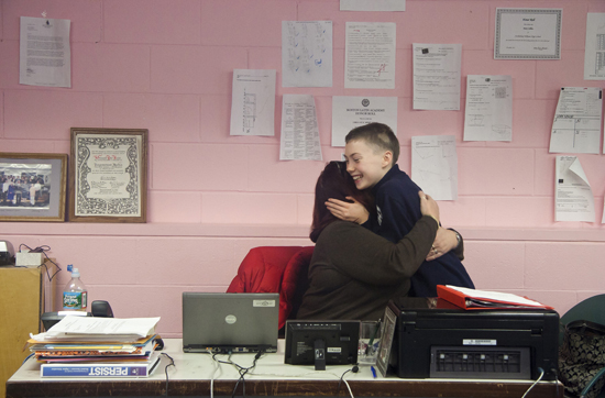 Jack hugging Trudie, a staff member at the Boys and Girls Club.